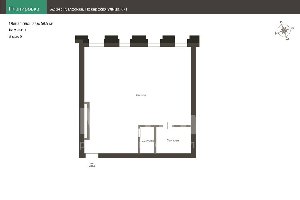 Окна выходят в благоустроенный двор и особняки соседних переулков.